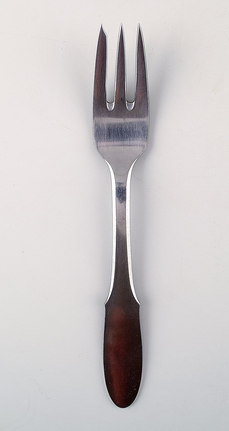 Georg Jensen, GJ Mitra stålbestik. 4 Kagegafler. Stemplet. Måler 14,5 cm. I flot stand.