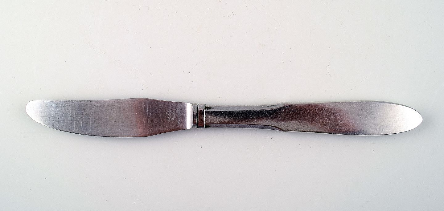 Georg Jensen, GJ Mitra stålbestik. Middagskniv. Flere dele haves. Stemplet. Måler 23 cm. I flot stand.
