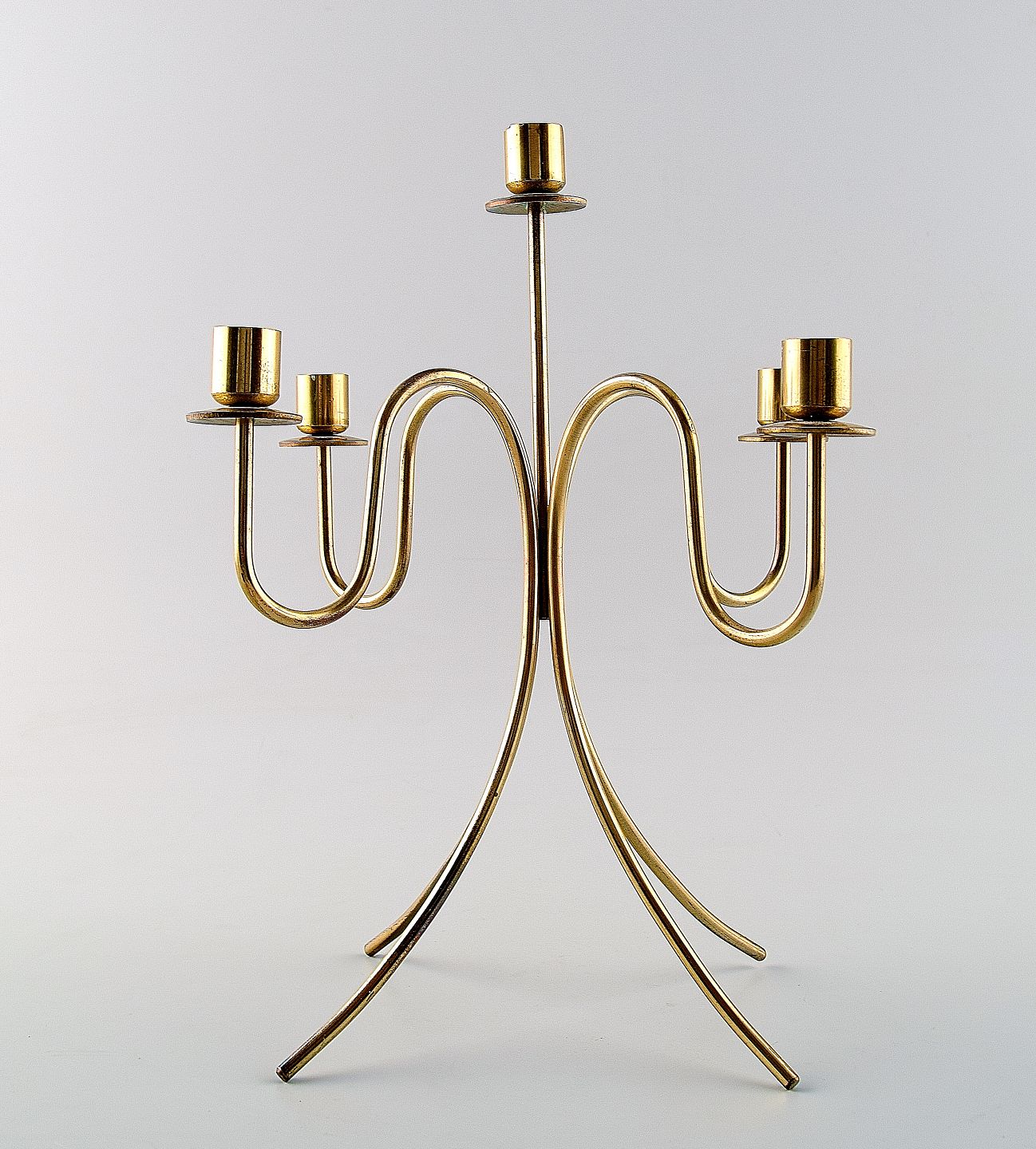 Josef Frank. Fem-armet messing lysestage. Mærket: Made in Sweden. Mål: 23 cm. I perfekt stand. Ca. 1960´erne.