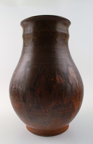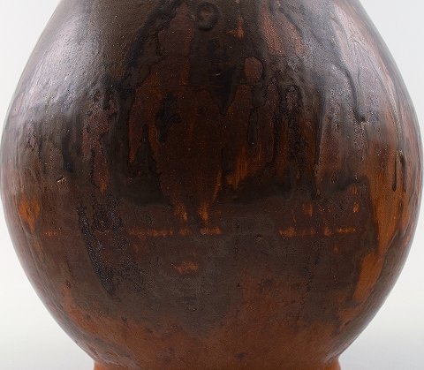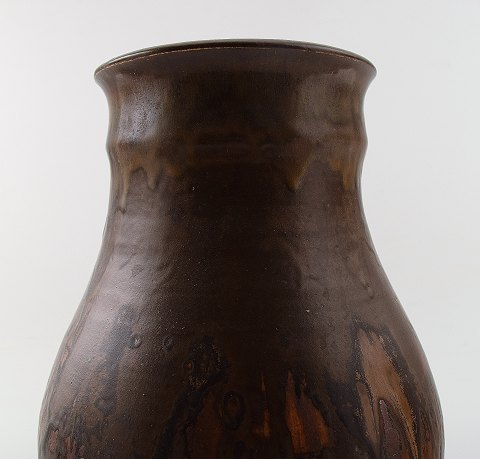 Stor Royal Copenhagen unika stentøjsvase, dateret 1926. Dobbeltglasur i brune nuancer. I flot stand. 1. sortering. Måler 28 x 18 cm.