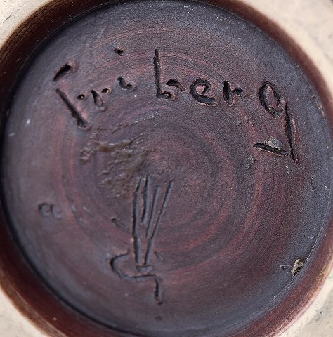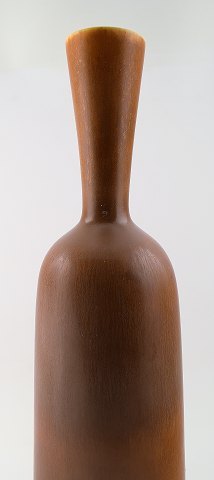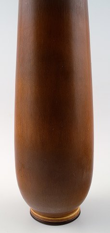 Large Berndt Friberg Studio pottery vase. Modern Swedish design. Unique, handmade. Fine glaze in shades of brown! Perfect. 1st. factory quality. Stamped a = 1959 Size: 36 cm. height.