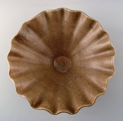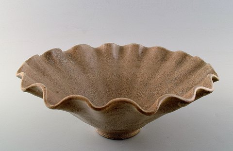 Arne Bang. Ceramics, large bowl. Stamped AB 186. Beautiful glaze in sand colour shades. In perfect condition. Diameter: 23.5 cm. Height: 9 cm.