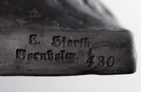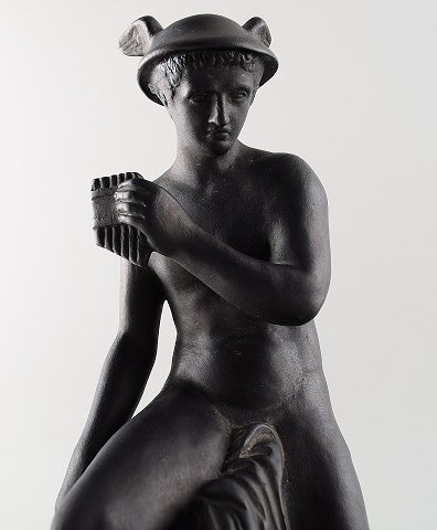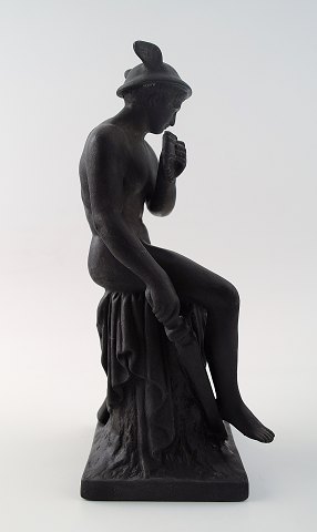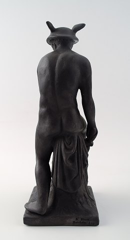 L. Hjorth, Merkur i sort terracotta. Modelnummer 130. I perfekt stand. Måler 22 cm.