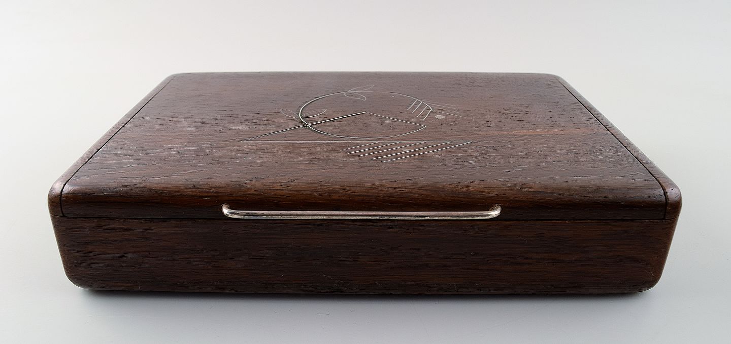 Frantz Hingelberg, Aarhus. Rosewood box with silver inlay. Danish design. In very good condition. 1960 / 70s. Measures: 23 x 5 cm. Hallmarked.