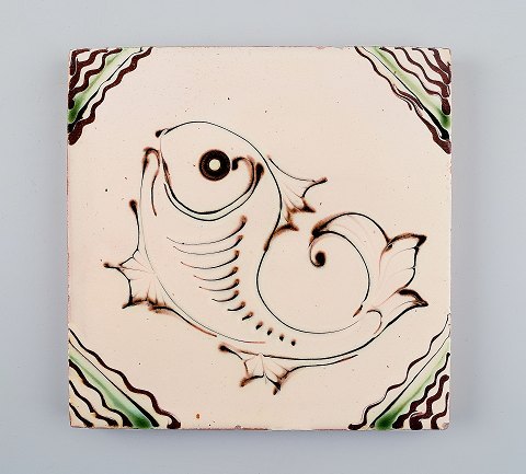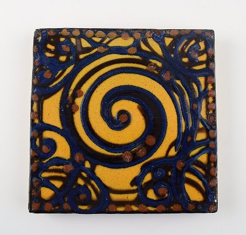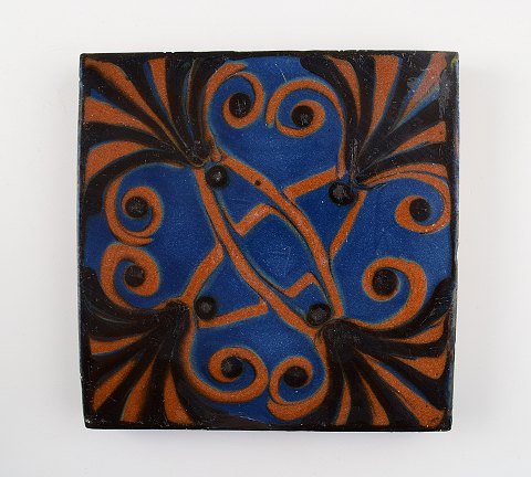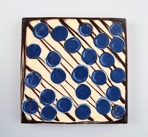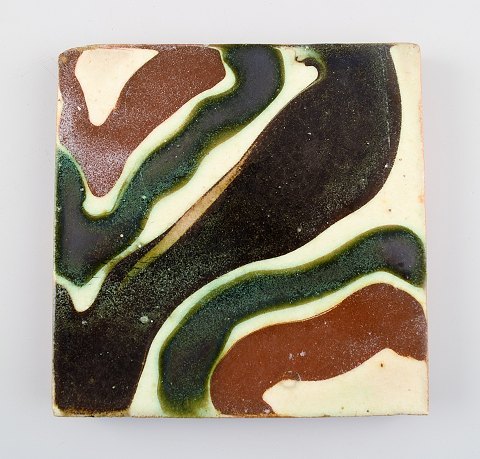 5 Kähler, HAK, glazed stoneware tiles. Different motives, 1930 / 40s. Unstamped. Dimensions: 15 cm. In very good condition.