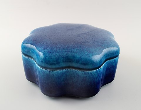 Paul Milet for Sevres, large jewelry box / box with lid, painted in turquoise overglaze. France app. 1930s Hallmarked. In perfect condition. Measures 18 cm. x 7 cm.