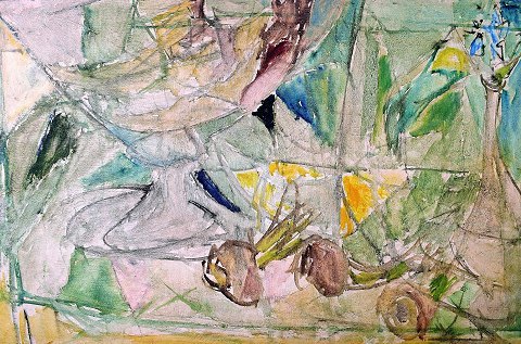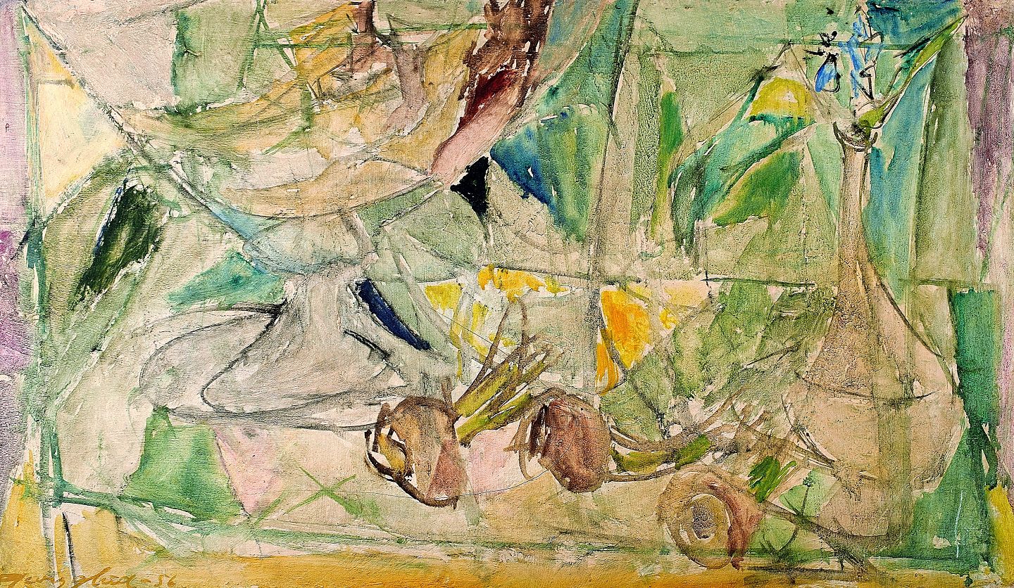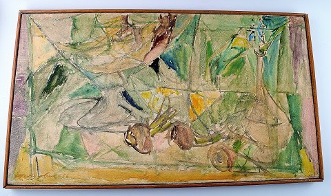 Georg Glud, stilleben, olie på lærred. I flot stand. Signeret, dateret 56. Måler 58 x 33 cm. Rammen måler 1 cm.