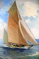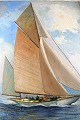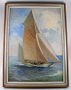 Unknown artist, mid 20th century. Sailing ship with white sails. Oil on board. In very good condition. Unsigned. Measures 55 x 77 cm. The frame measures 5 cm.