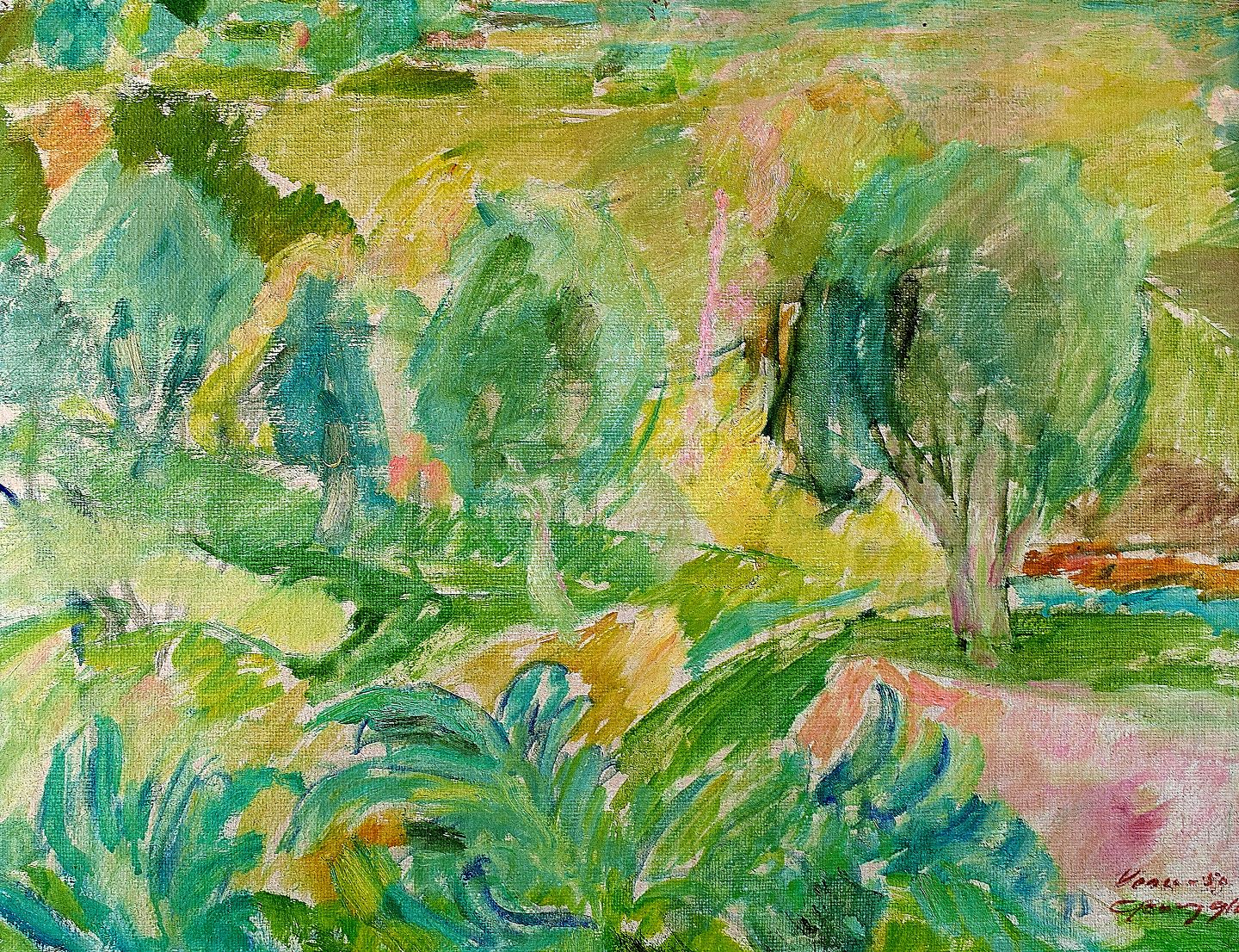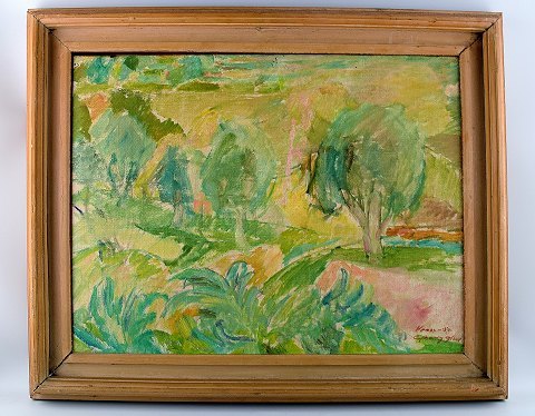Georg Glud, landskab fra Vence, Frankrig, olie på lærred. I flot stand. Signeret, dateret 50. Måler 55 x 43 cm. Rammen måler 6 cm.