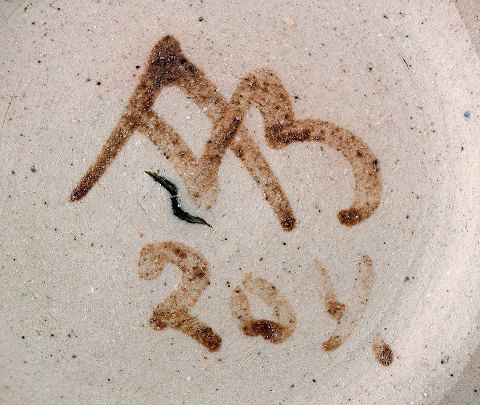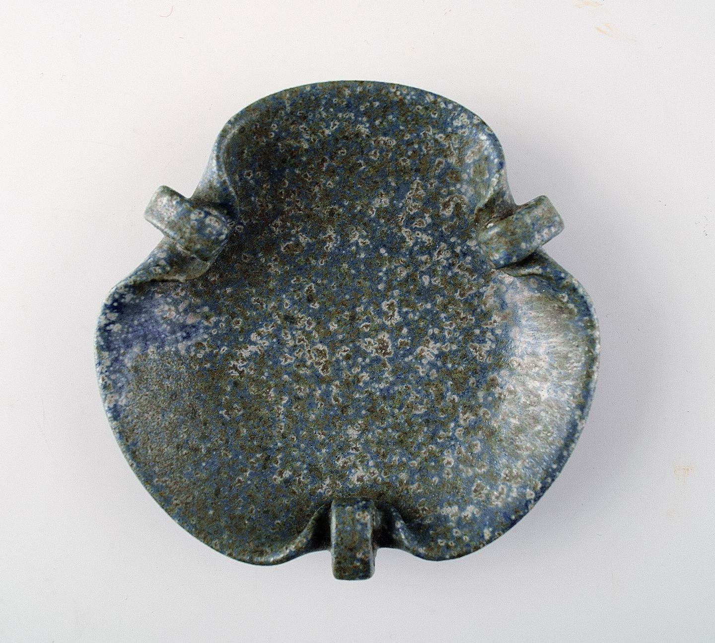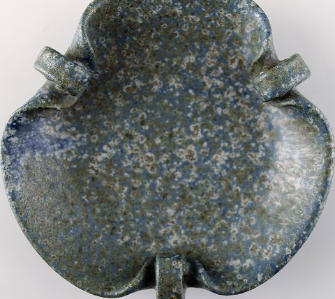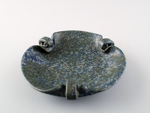 Arne Bang. Fad af keramik. Modelnummer 204. Flot glasur i grønblå nuancer. Stemplet AB. Diameter: 10 cm. Dybde 3 cm. I perfekt stand.