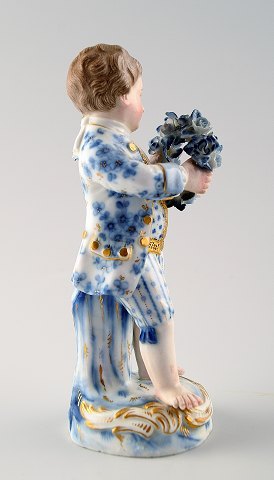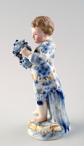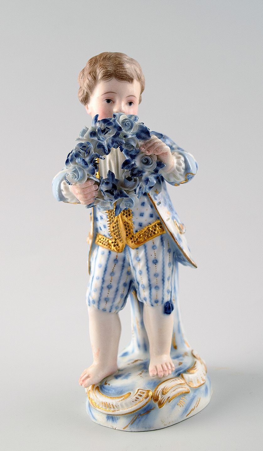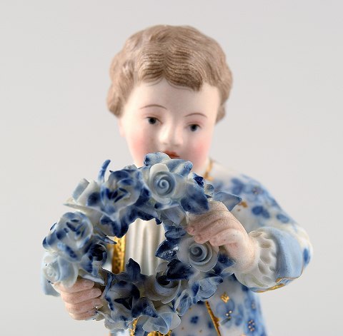 Antique porcelain figurines, Meissen, boy with garland, late 19c. Overglaze. In good condition. No chips. Measures 12 cm.