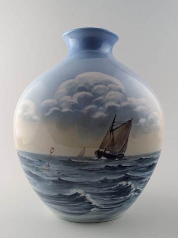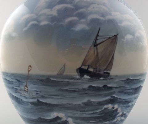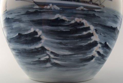 Stor B&G, Bing & Grøndahl, porcelænsvase, sejlskib på havet. I perfekt stand, 1. sortering. Stemplet. Måler 32 x 24 cm.
