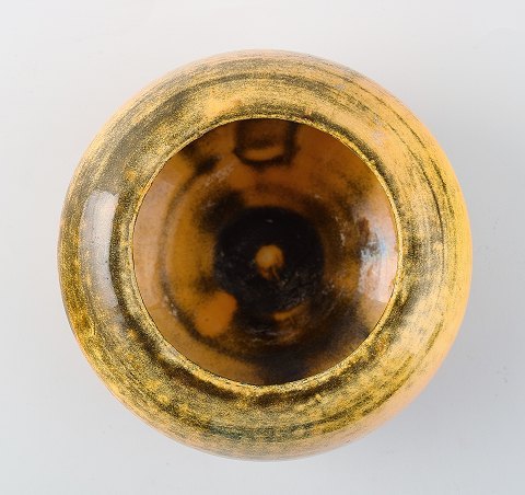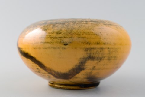 Kähler, HAK, Svend Hammershöi, glaseret stentøjvase. I perfekt stand. Flot urangul glasur. Stemplet. Måler 10 x 6.5 cm.