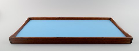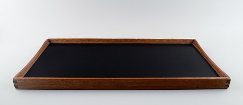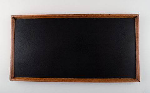 Finn Juhl: Reversible tray of teak with turquoise and black melamine. Produced by Torben Orskov. 1960s. Danish design. Length 45 cm. Width. 23 cm. In very good condition.