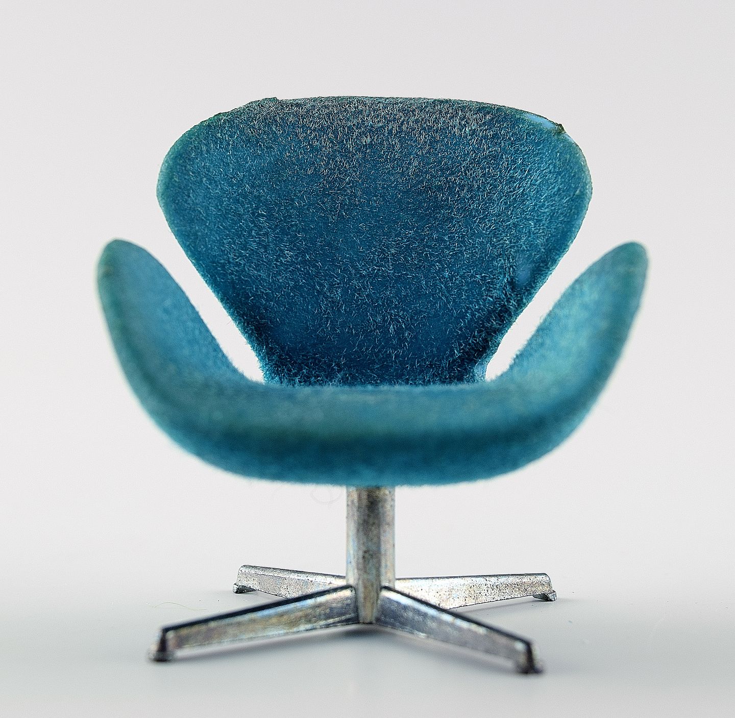 Arne Jacobsen, miniature svanestol i turkis. I god stand, lettere brugspræg. Måler 6 cm.