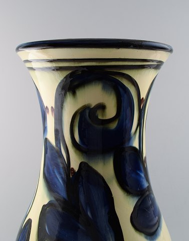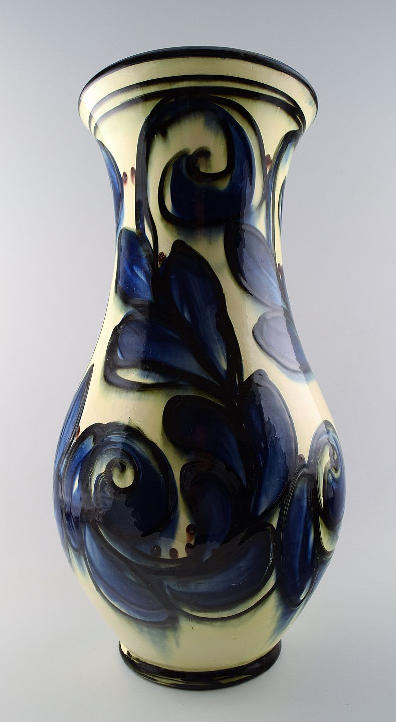 Monumental Annashab pottery ceramic vase, decoration in dark blue shades. Denmark c. 1940s. A really beautiful vase. Measures 51 cm. In perfect condition. Marked.