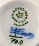 Sjælden Kgl. Musselmalet riflet Kongelig porcelæn. Royal Copenhagen Musselmalet riflet. Kaffekop uden hank nummer 1/70a. Højde 5,5cm. Diameter 8cm. Fin hel stand. 1. sortering.