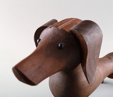Kay Bojesen (1886 - 1958) gravhund i valnød. Stemplet Kay Bojesen Denmark Copyright. Formgivet i 1952. Måler: 19 x 11 cm. I flot stand.
