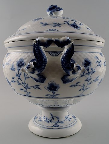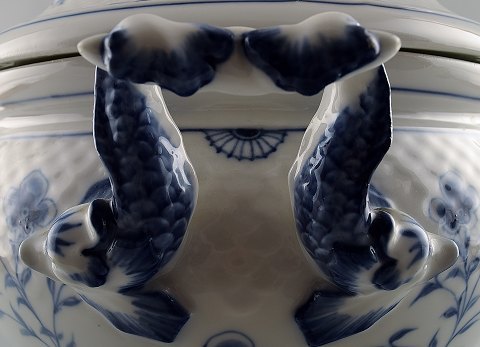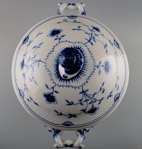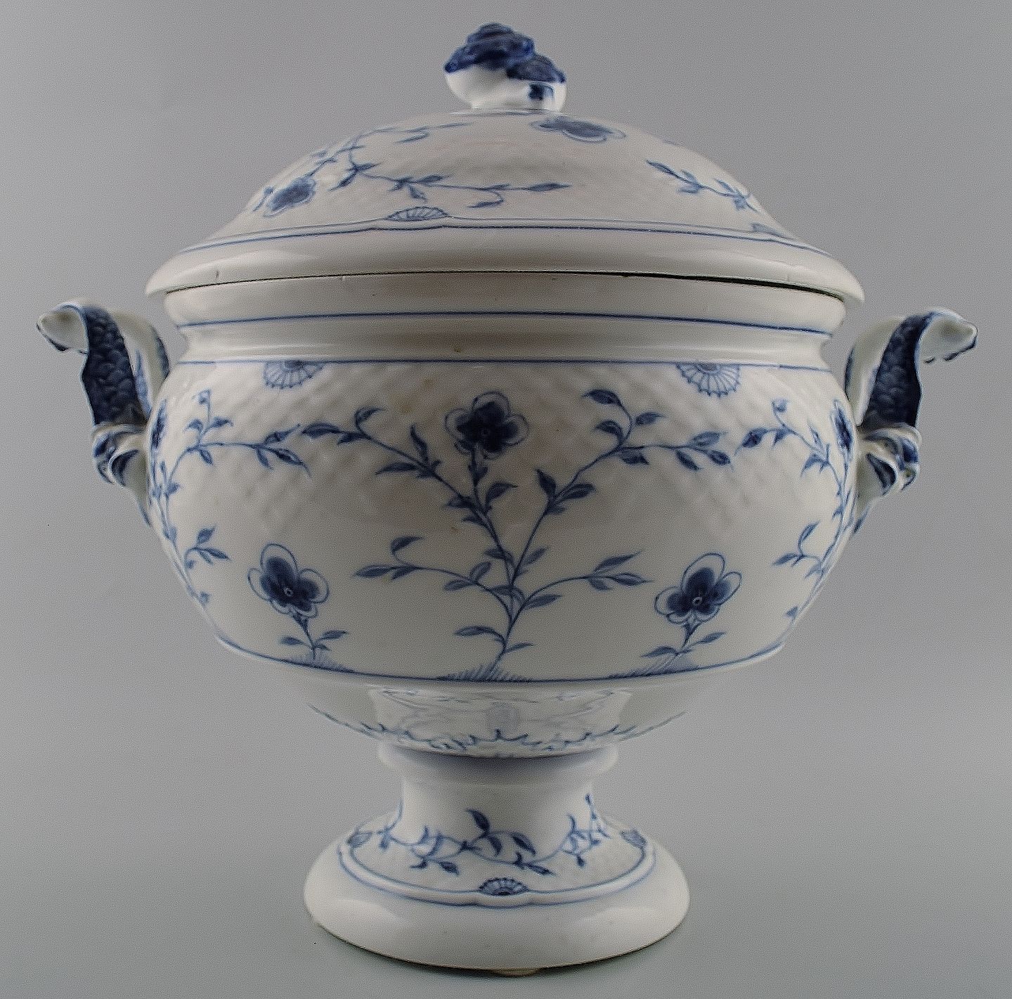 Stor, sjælden og imponerende B&G, Bing & Grøndahl musselmalet antik suppeterrin med låg. Måler 29 x 32 cm. Stemplet : Danish china works. 1890´erne. I perfekt stand. 1. sortering.