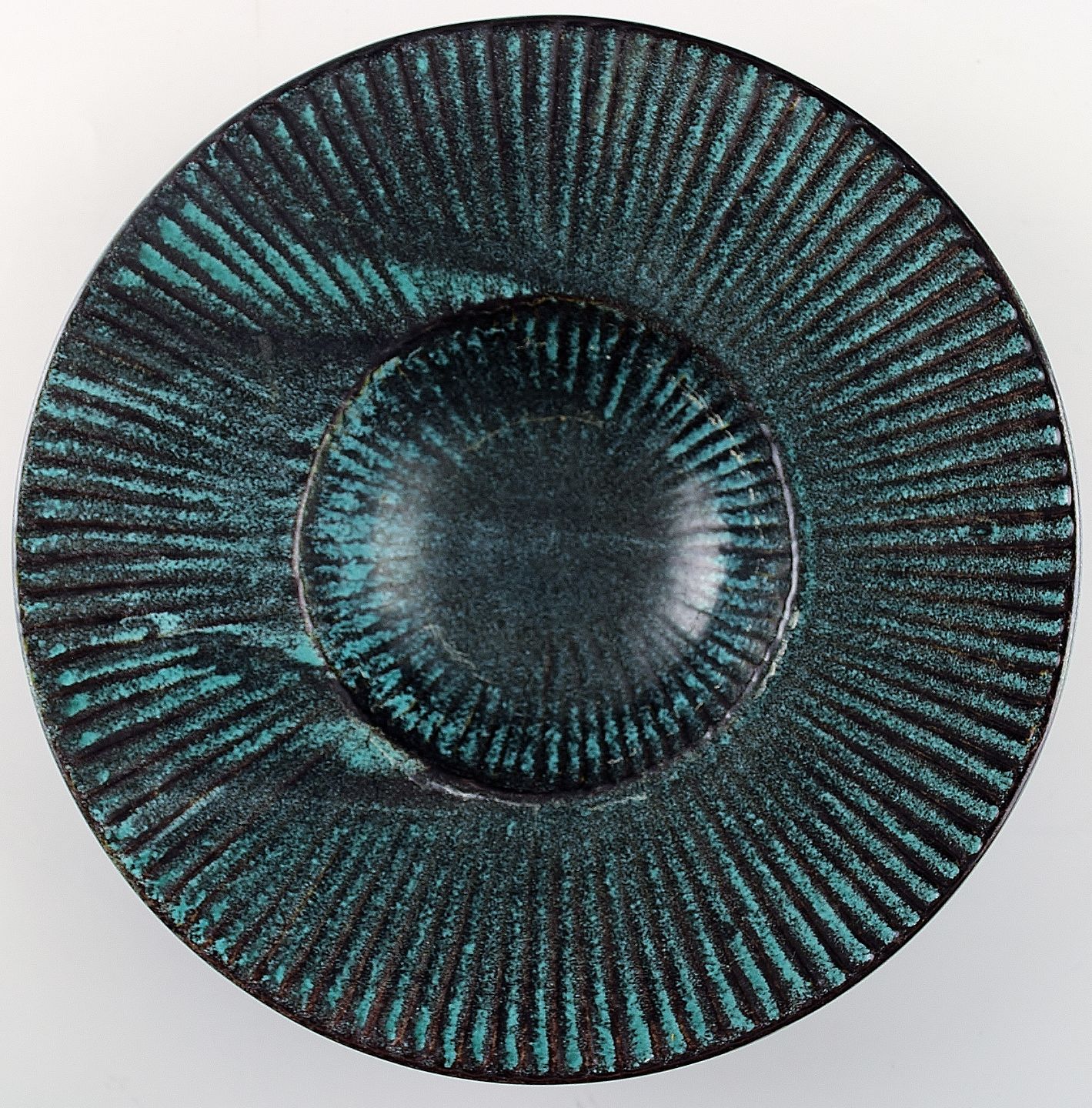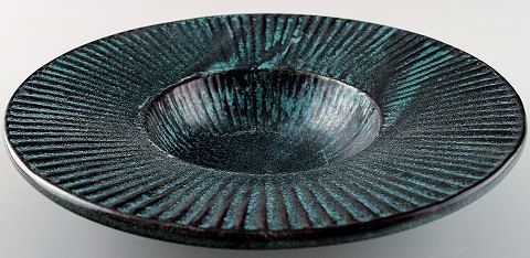 Kähler, HAK, around glazed dish 1930s. Designed by Svend Hammershoi. Turquoise Green glaze. Measures 20 x 4.5 cm. Marked In perfect condition.