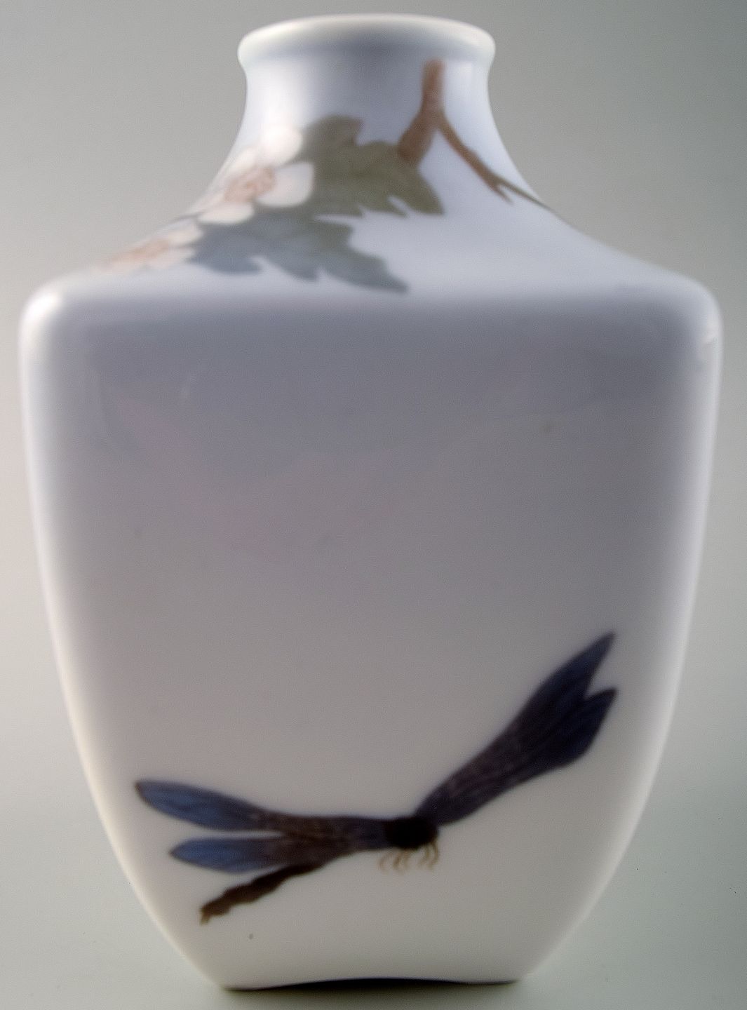 Royal Copenhagen vase dekoreret med blomster og insekt. Sjælden form. Tidligt stempel. Måler 11 x 6 cm. Modelnummer 69/654. 1. sortering, i perfekt stand.