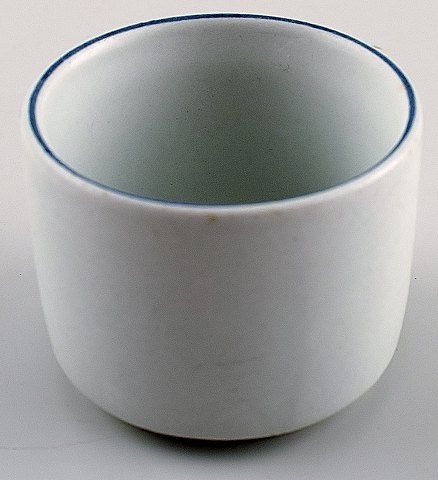 5 æggebægre, æggebæger. Aluminia blå kant, fajance. Blå Kant tegnet af Grethe Meyer for Aluminia og senere Royal Copenhagen. Måler 4,5 x 3 cm. I perfekt stand, 1. sortering.