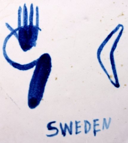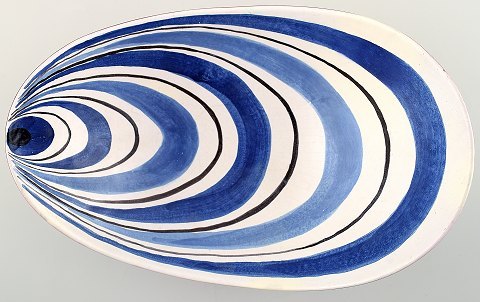 Large bowl, Stig Lindberg, Gustavsberg studio. Faience. 1940s. Dimensions: 27 x 19 cm. Signed with "studio hand". In good condition.
