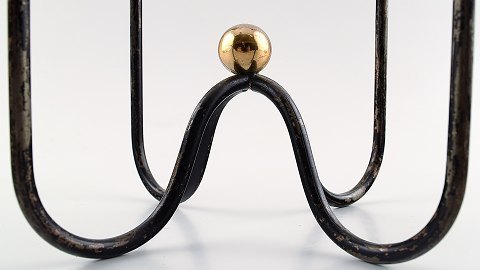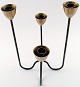 Gunnar Ander, Ystad Metall. Tre-armet metal og messing lysestage. Svensk design, smuk og enkel lysestage. Måler 29 cm. I perfekt stand. 1960/70´erne.