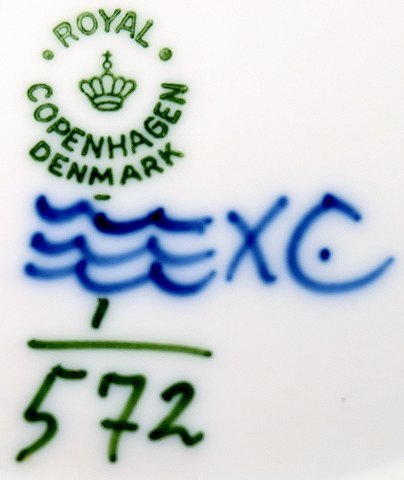 4 Royal Copenhagen plates blue fluted Half Lace. Diameter: 22.5 cm. Decoration number 1/572. 4 plates on stock. 1st. factory quality, in perfect condition.