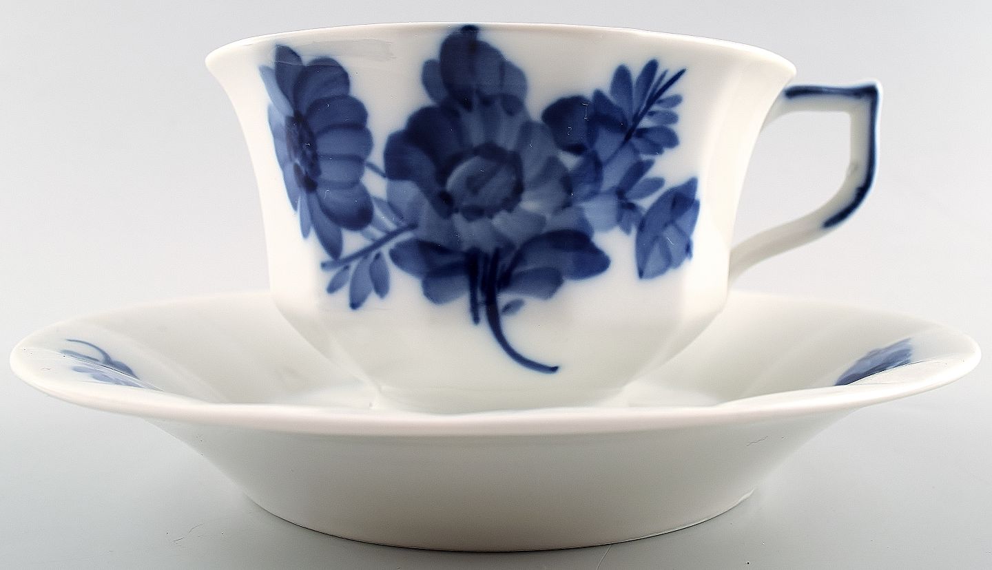 16 sæt Royal Copenhagen Blå blomst kantet. 16 sæt STOR morgenkop/tekop. Stor blå blomst kantet kaffekop fra Royal Copenhagen. Dekorationsnummer 10/8500. 1. sortering. Højde 6 cm. Diameter 9,5 cm.