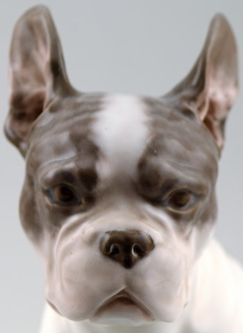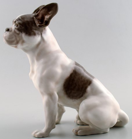 Rare Royal Copenhagen dog figurine 1466, French Bulldog sitting. Measures 20 x 18 cm. LJ 1913 Variegated 1452. In perfect condition. 1. factory quality.