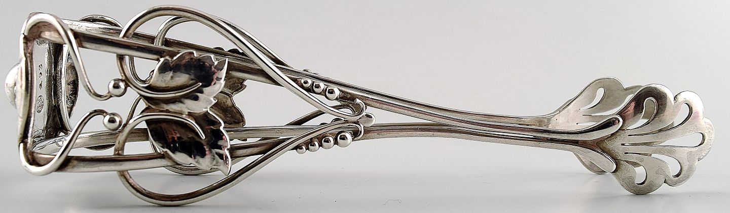Sjælden Georg Jensen sukkertang, rigt ornamenteret.