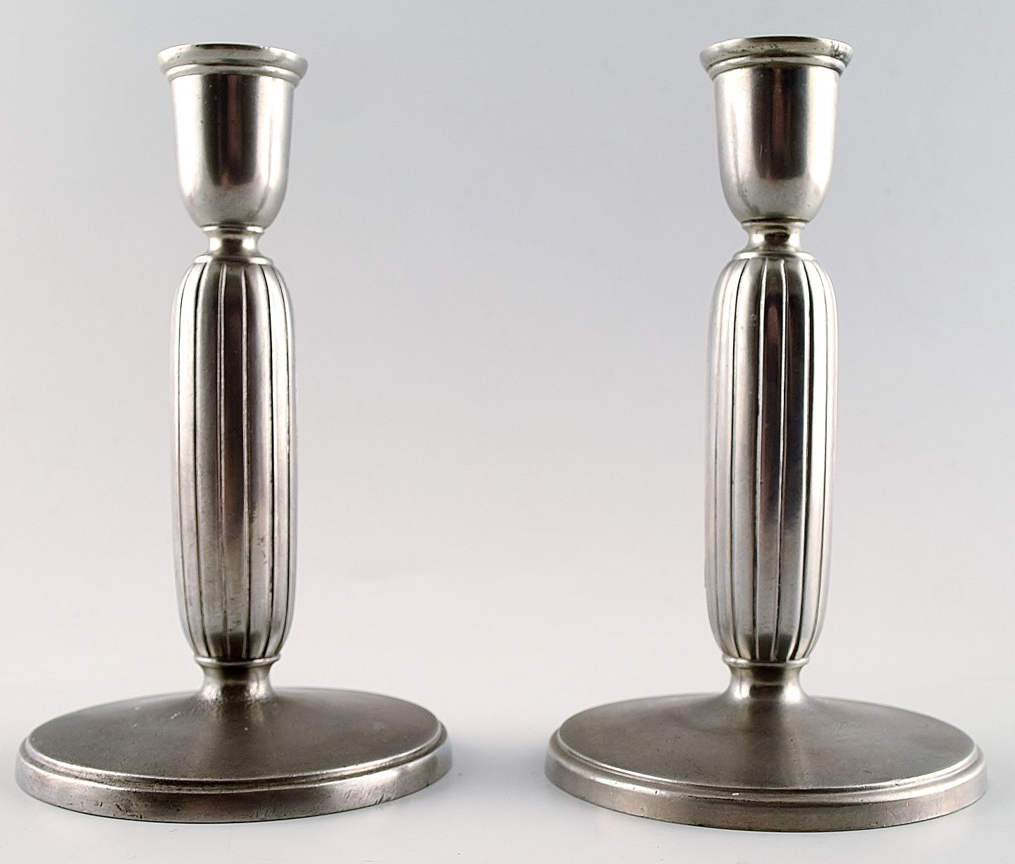 Just Andersen art deco par tin lysestager, nummer 2574.