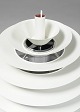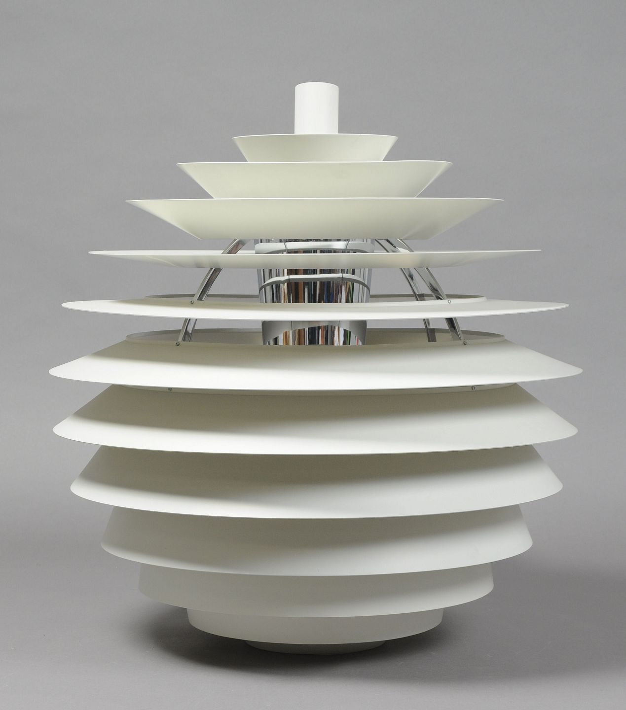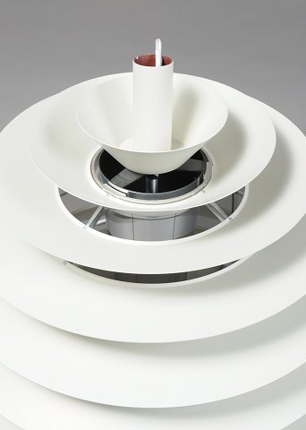 Poul Henningsen for Louis Poulsen, PH Louvre, pendant lamp. Frame with white-lacquered metal blade shades. Height. 63 cm. Diameter 58 cm. In very good condition.