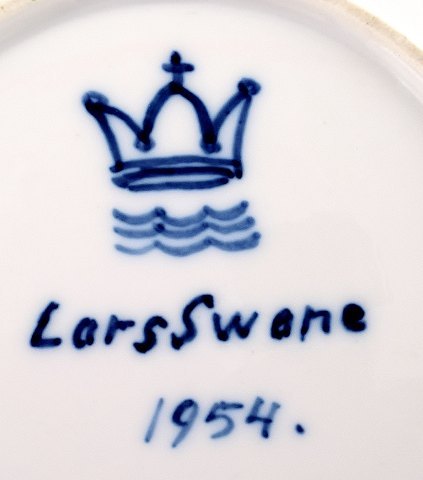 Lars Swane for Royal Copenhagen, unique plate. hand painted with flower, dated 54. In good condition, minor burning crack. 1st. factory quality. Measures 19 cm.