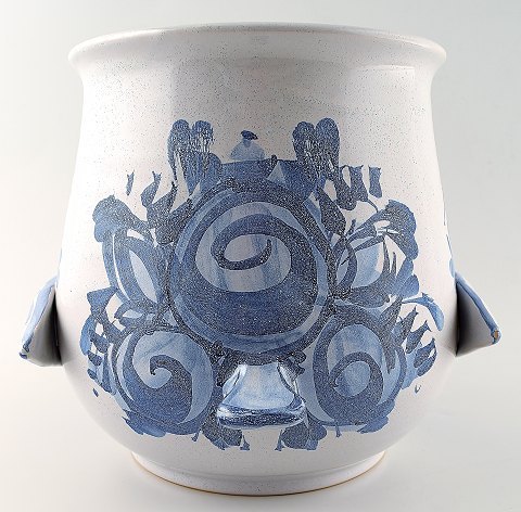 Bjorn Wiinblad unique ceramic flower pot, blue glaze. Measures: 21 cm. x 23 cm. Model number V.69. Dated, 1975. In perfect condition.