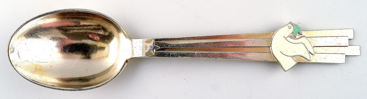 2 Michelsen juleskeer. 1939 JULETRÆET af O.Stæhr-Nielsen. Juleske 1943, FREDSDUEN, tegnet af O.Stæhr-Nielsen. Måler 15,5 cm. I flot stand.