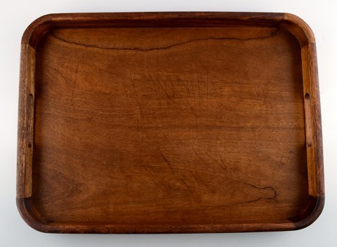 Large Danish design tray in teak, design of high quality. Unstamped, Denmark, 60s. Measures: 56x41x5 cm. In fine condition.