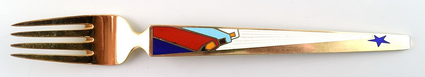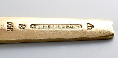 Michelsen julegaffel. Julegaffel af A. Michelsen fra 1958, forgyldt sterling sølv 925. Måler 15,5 cm. I flot stand.