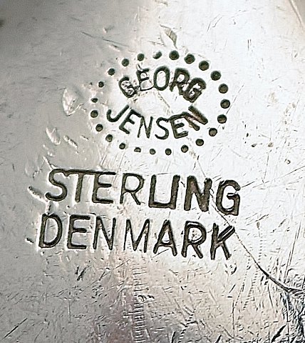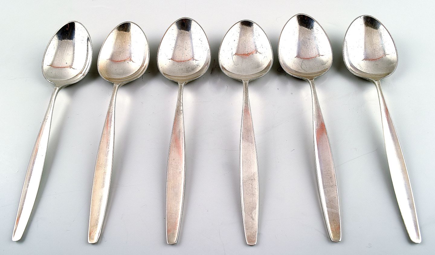Georg Jensen Sterling Silver Cypress 3 Soup / dessert spoons. Mid 20 c. Measures 18 cm. In perfect condition. Marked.