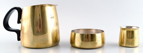 Henning Koppel (1918-81) for Georg Jensen design 7002. Breakfast tray in brass, consisting of tray, pot, sugar and creamer. Danish design, 1960s. In perfect condition. The tray measures: 32 x 25 cm.