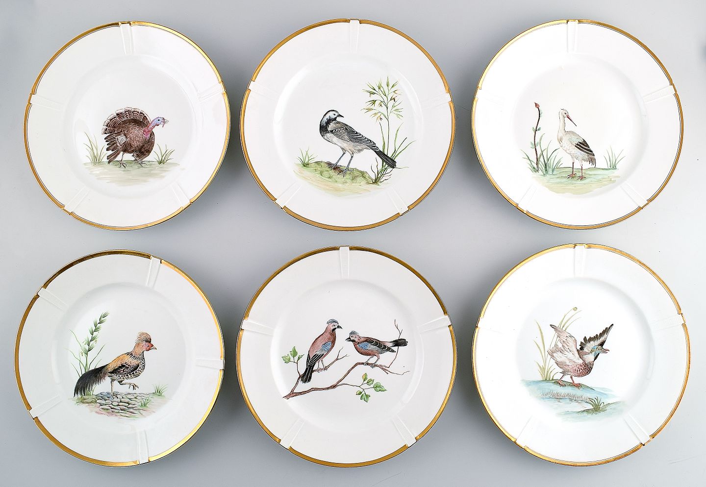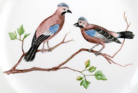 6 B&G, Bing & Grondahl hand painted plates with bird motifs. Painted after watercolor by Pastor Johannes Brorson. Measures 24 cm. 1. Quality, in perfect condition. App. 1934.