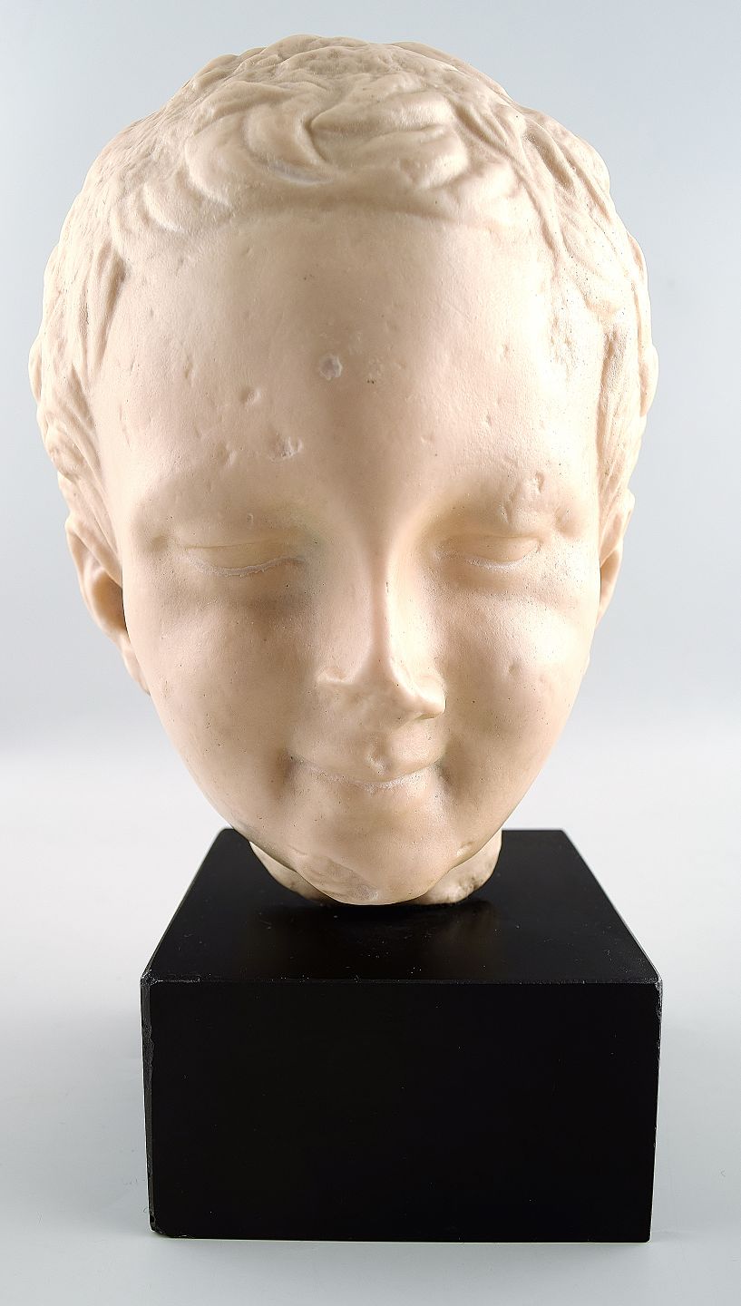 Boys bust in alabaster on plinth. Indistinctly signed. App. 1950s In good condition, minimal chips. Measures 23 x 13 cm.