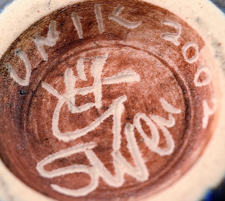 Unique Sven Wejsfelt, Rörstrand miniature stoneware vase. Beautiful glaze. In perfect condition, 1st. Dated 2002. Measures 8 cm.