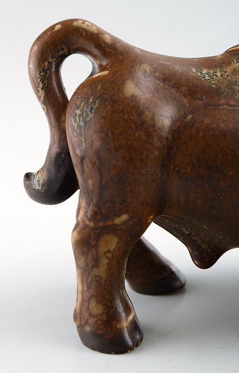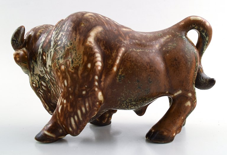 Rare Rörstrand stoneware figure by Gunnar Nylund, bison. In perfect condition. 1st. factory quality. Measures 17 x 11 cm. Marked.