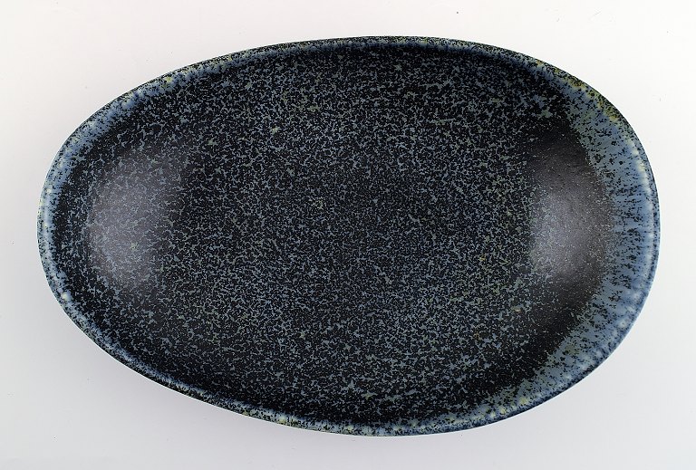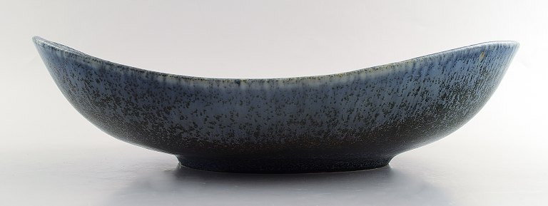 Carl-Harry Staalhane, Rorstrand, large stoneware bowl. Beautiful glaze in shades of blue. Length 27.5 cm. 19 cm. wide. 7 cm. high. In perfect condition, 1st. factory quality.
