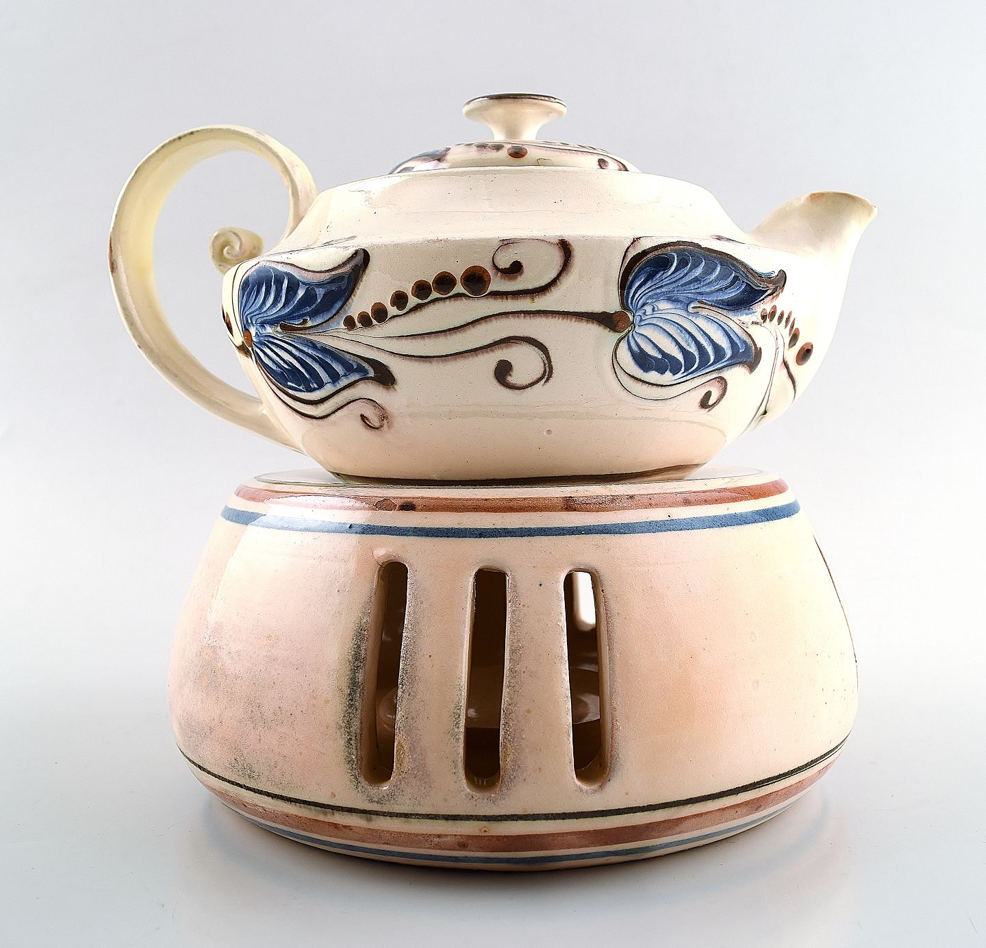 Kähler, Denmark, glazed stoneware teapot with heater for tea lights. Marked. 1930s. Measures: 15 cm. x 15 cm. In perfect condition.