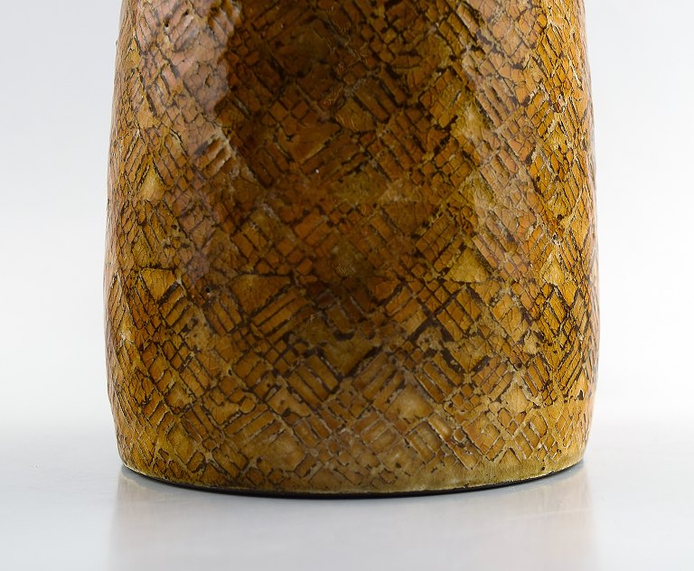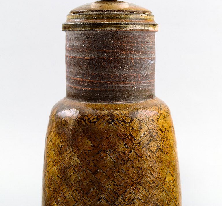Kähler, Denmark, glazed stoneware table lamp, 1960s. Designed by Nils Kähler. Uranium yellow glaze. Measures 20 cm. Total height 38 cm. Marked. In perfect condition.