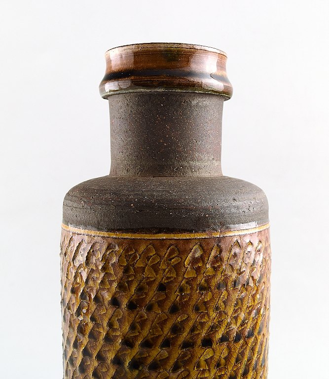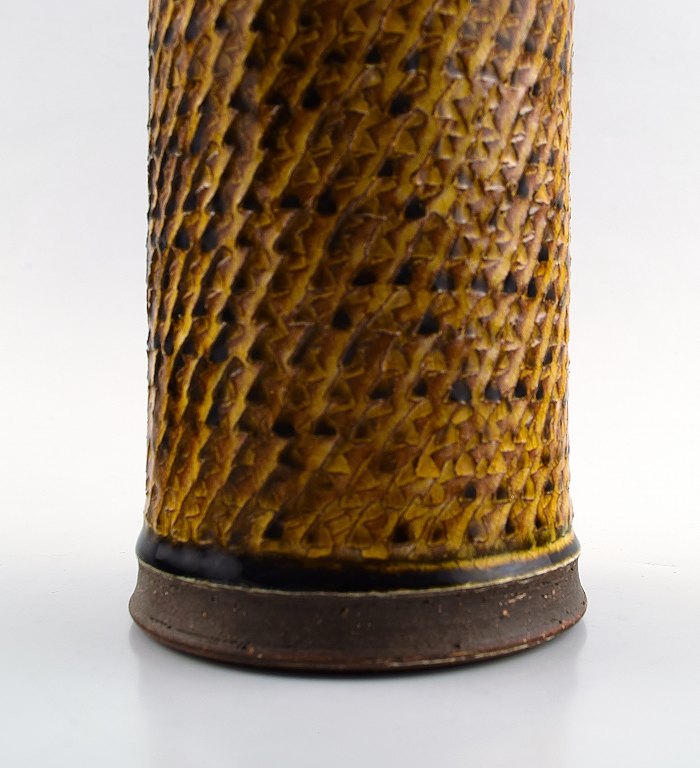 Kähler, Denmark, glazed stoneware vase. Nils Kähler. 1960s. Brown and dark yellow glaze. In perfect condition. Marked. Measures 25 cm.
