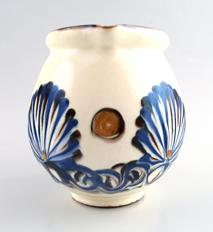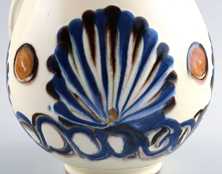 Kähler, Denmark, glazed stoneware pitcher. 1930s. Beautiful glaze. Marked. Measures: 12 x 15 cm. In perfect condition.